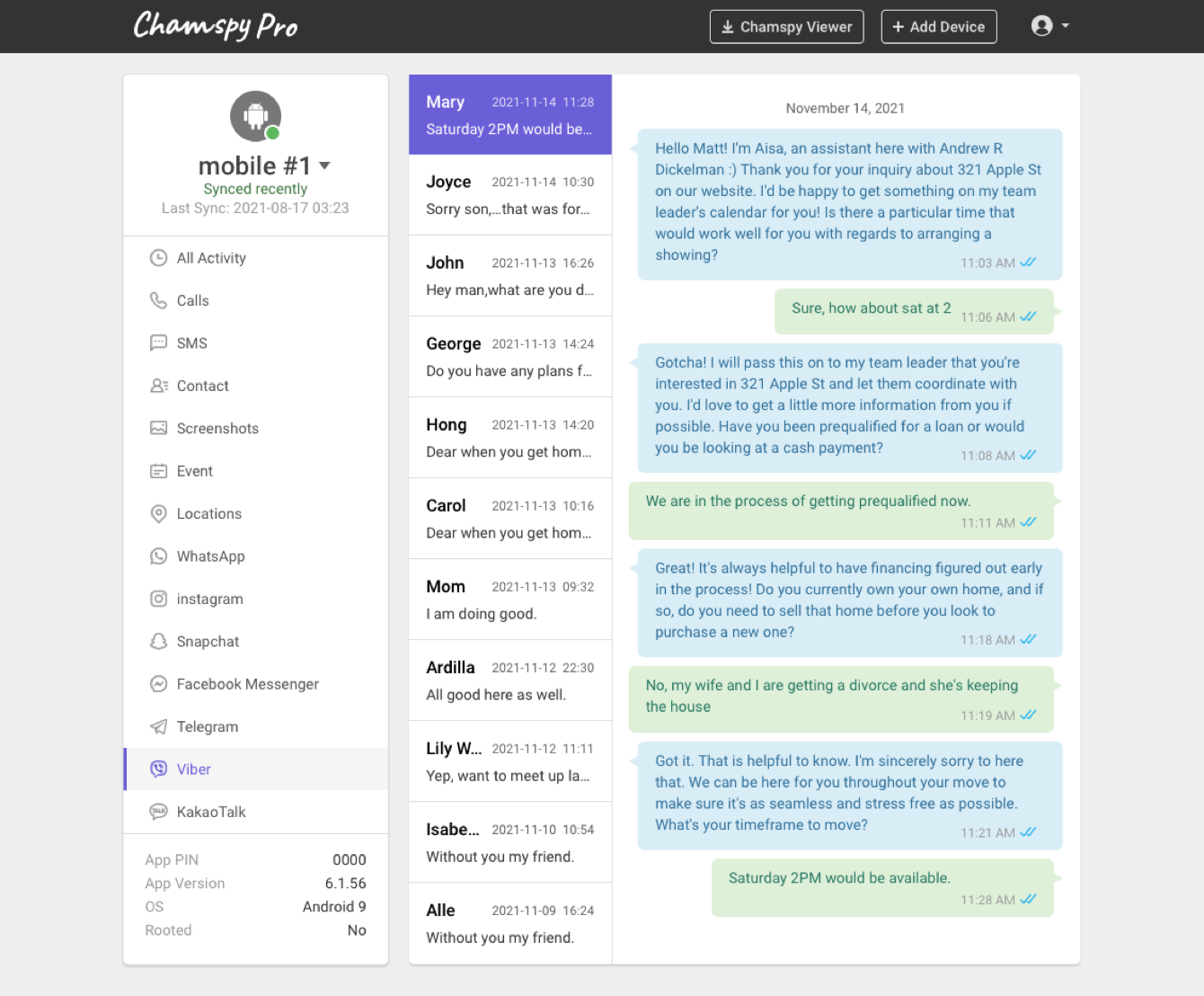 In addition to Snapchat, Chamspy pro offers other monitoring features and gives you total control of your child's smartphone. It's available for both Android and iOS, and you can access the Chamspy pro dashboard from any computer with an internet connection. It also can be used to track other social media accounts including Instagram, Tinder, Facebook, Kik, Line, Telegram, Hangouts, WhatsApp,etc. Calendar activities, stored photos, sms, sim card change, phone call logs as well as GPS location can all be tracked.